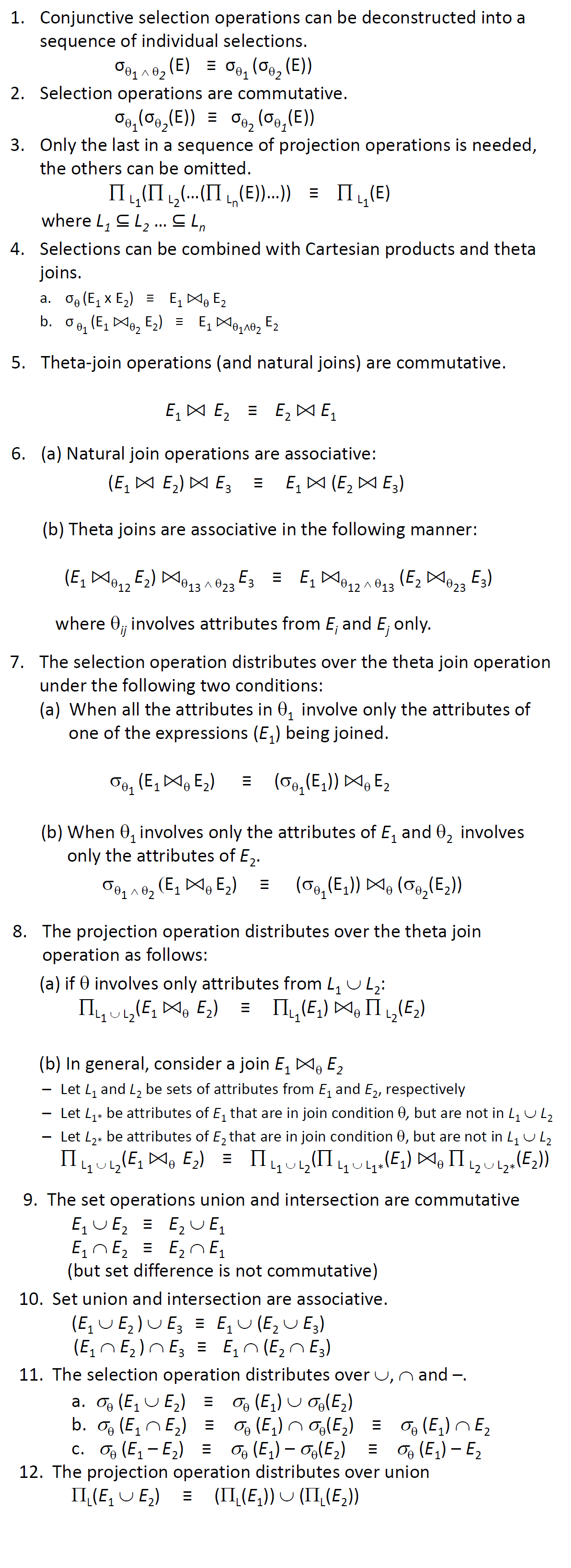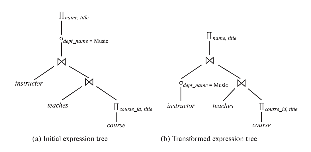 Performing the selection as early as possible reduces the size of the relation to be joined. Performing the projection as early as possible reduces the size of the relation to be joined.