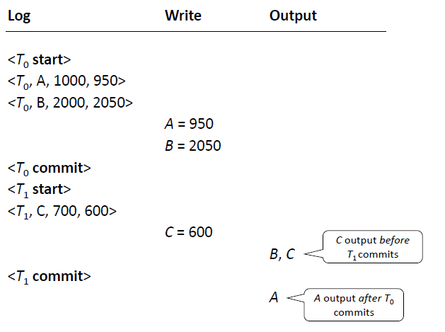 - If T0 doesnt commit, the transaction is incomplete, the state is incomplete and have to go back to consistent